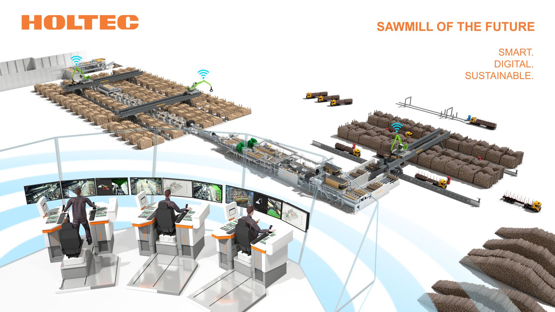 At HOLTEC, we are fully committed to driving this transformation – with a clear focus on elevating log handling to the next level. As specialists in the front end of the sawmill, we are advancing automation and digitalisation precisely where it all begins: in the efficient, sustainable, and human-centred handling of logs.