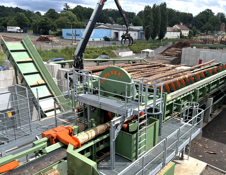 Am Standort Lauterbach stand 2023/24 die komplette Erneuerung der in die Jahre gekommenen Rundholzanlage an – bei laufender Produktion und unter beengten Platzverhältnissen.