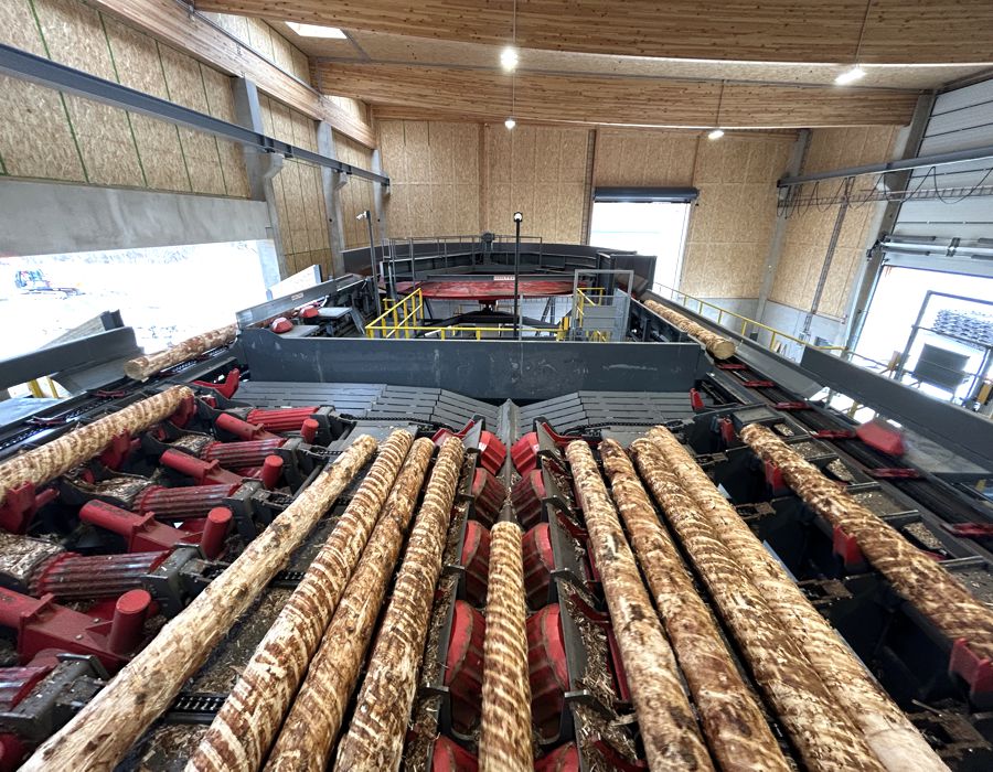 Der Prozess beginnt mit der Pufferung und Vereinzelung des Rundholzes über ein verschleißarmes Chainless-System. Ein Logrunner beschleunigt die Einzelstämme, bevor ein Messblockzug mittels 2D-Lichtgitter deren Geometrie erfasst. Bestehende Komponenten beim Kunden wurden wirtschaftlich sinnvoll integriert – ganz im Sinne einer maßgeschneiderten Lösung.
