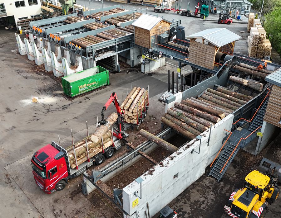 Am Standort Regen sollte der bestehende Rundholzplatz durch eine leistungsfähige, zukunftssichere Lösung ersetzt werden. Dabei standen zwei zentrale Anforderungen im Fokus: die Verarbeitung von Starkholz mit extremen Durchmessern sowie die besonders schonende Behandlung des hochwertigen Rohmaterials.