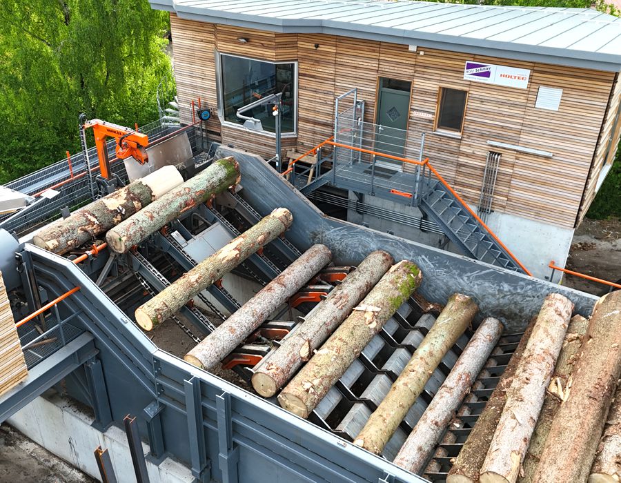 Nahezu 100 % des eingesetzten Holzes erfordern eine Reduzierung – bei gleichzeitig höchsten Ansprüchen an Oberflächenqualität und Materialerhalt. Jeder Prozessschritt, von der Beschickung über die Vereinzelung bis zur Entrindung, musste so ausgelegt werden, dass Beschädigungen minimiert und Werteinbußen vermieden werden.