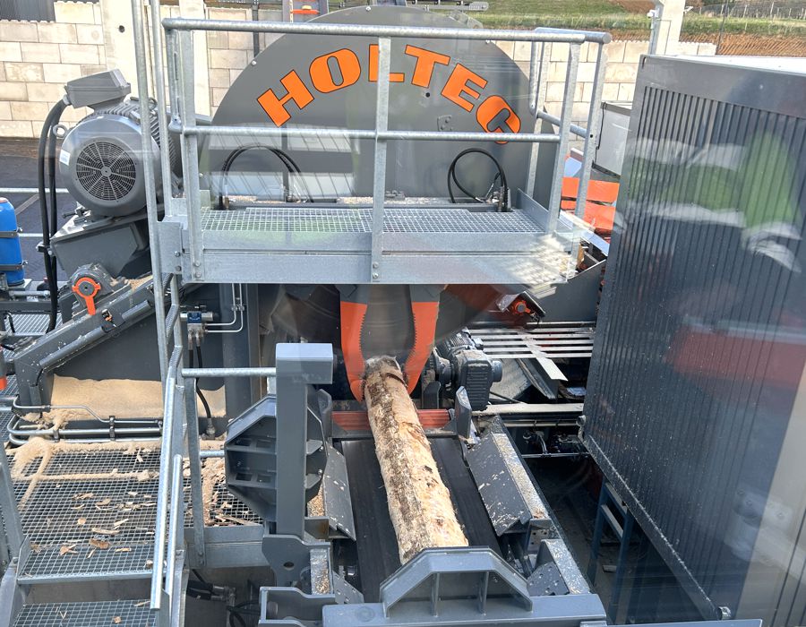 Im Zentrum der Anlage steht die HOLTEC-Bandkapplinie mit zwei festen Anschlägen, die das hochpräzise Ablängen auf 2,1 m und 2,65 m sicherstellt. Das Ergebnis ist eine robuste, wartungsfreundliche und prozessstabile Lösung, die höchste Präzision mit industrieller Leistungsfähigkeit verbindet – und damit die optimale Basis für den erfolgreichen Start der neuen LVL-Produktion von Thébault schafft.